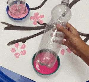 - Finally, use your upcycled bottles to dip into the paint and print onto the branches of the tree