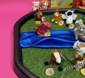 - Encourage children to retell the story, moving the animals across the "river" and onto the land as they finish the race!
