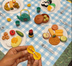 - Encourage children to explore the pretend foods through play — sorting, naming, and “serving” them to friends.