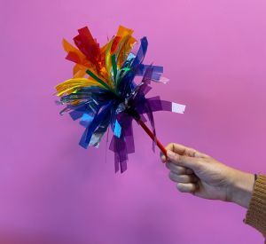 - The wrap the strip of cellophane around a pencil or twig and secure into place with sticky tape